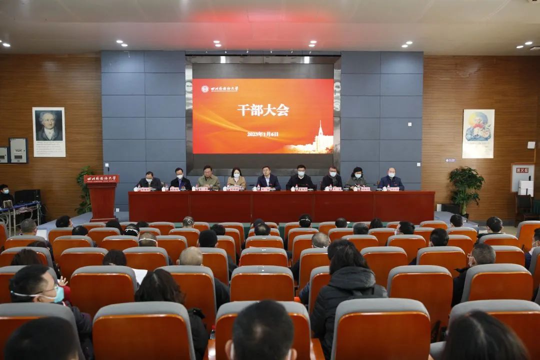 校长董洪川在会上对学校2022年的工作进行了总结。他指出,2022年是学校内涵建设年,也是学校办学73年来经历的最艰苦的阶段之一,学校一手抓疫情常态化防控和疫情应急处置,一手抓事业发展,在持续推进新时代党的全面建设、深入推进“双一流”内涵建设、积极推进学校外延拓展、加强完善内部治理体系、加强民生民心工程建设五个方面取得了喜人成绩。董洪川对2023年学校工作进行了部署。他表示,2023 年是学习贯彻党的二十大精神的开局之年,是落实市委六届二次全会精神的关键之年,也是奋力实现学校第二次党代会宏伟蓝图的启航之年,学校要重点做好四个方面的工作:一是把牢政治方向,保持赶考清醒,在全面从严治党上更加坚定不移;二是落实战略任务,推动内涵建设,在实现高质量发展上更加聚精会神;三是把握难得契机,突破发展瓶颈,在积极拓展外延上更加善做善成;四是坚守根本立场,践行师生至上,在增进民生福祉上更加用心用情。董洪川同时指出,学校发展过程中仍然存在学科专业和内涵建设力度还需进一步加强、部分专业方向还需进一步凝练、其他外语学科和非外语学科对地方经济支撑力度还需进一步加强、内控机制需进一步完善、民生工作还需要进一步加强等问题,亟待思考解决。