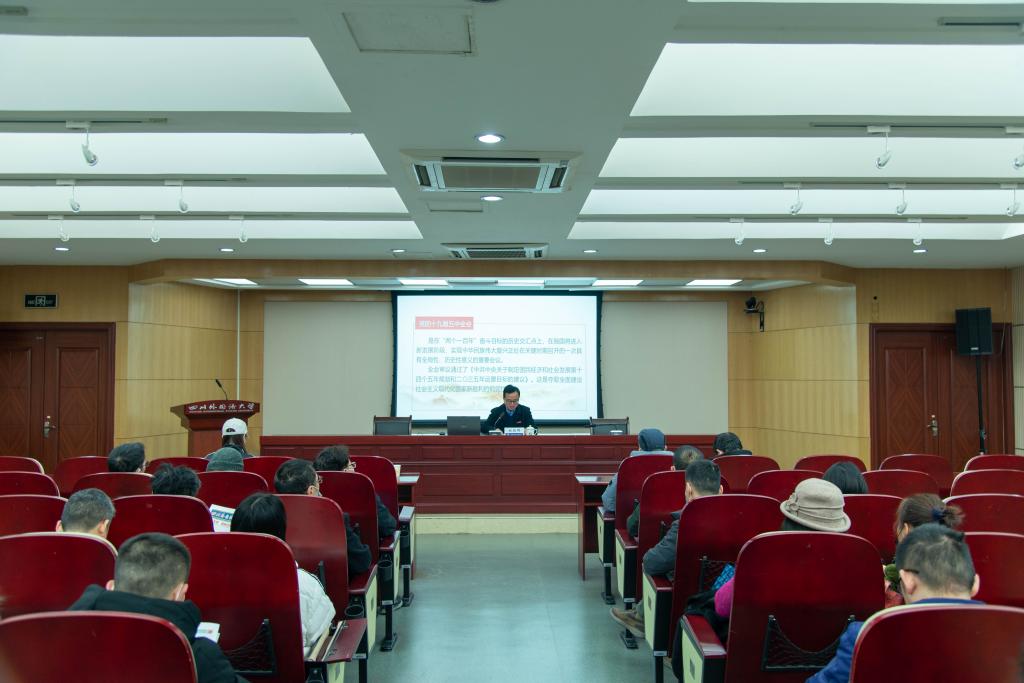 编者按:党的十九届五中全会擘画了我国“十四五”时期及二〇三五年发展的宏伟蓝图,作出了应对变局、开辟新局的顶层设计,在党和国家发展进程中具有全局性、历史性意义。宏伟蓝图鼓舞人心,学习宣讲凝聚力量。连日来,我校校领导分别深入部门、院系为师生开展宣讲,掀起学习贯彻党的十九届五中全会精神热潮。