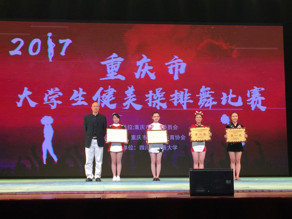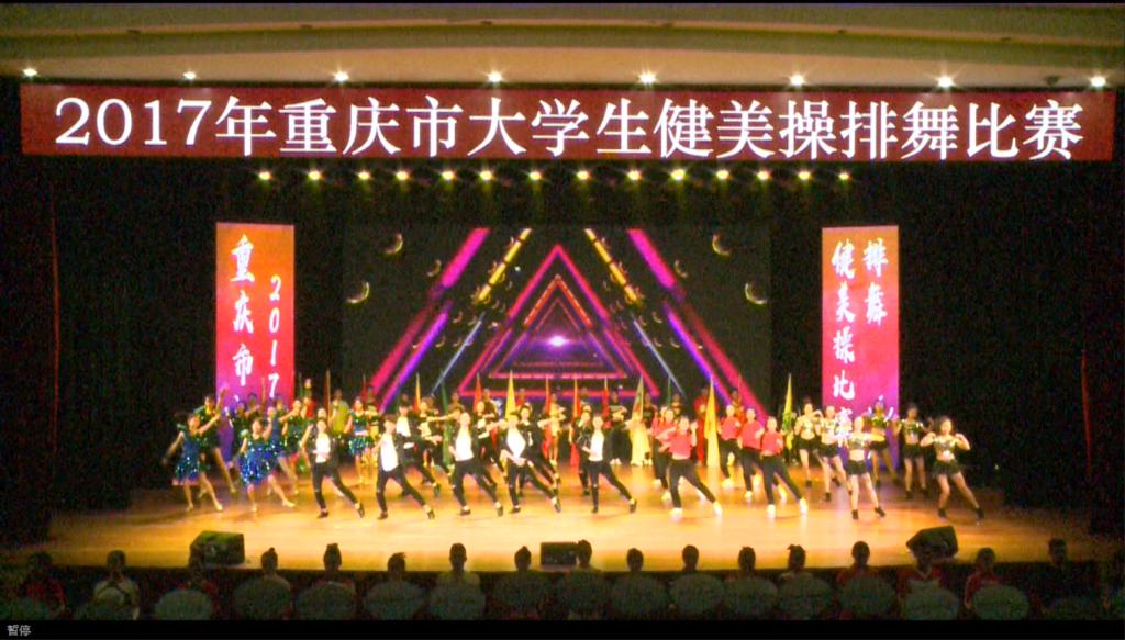 11月8日至11月10日,由重庆市教育委员会主办、四川外国语大学承办的2017年重庆市大学生健美操排舞比赛在我校东区大礼堂成功举行。全市共有21所普通高校参加了本次比赛,比赛分为健美操(啦啦操)和排舞两部分。排舞是2017年大学组规定曲目比赛,健美操则分为2016版啦啦操大学校园规定示范动作和啦啦操花球自编动作两个项目的比赛。