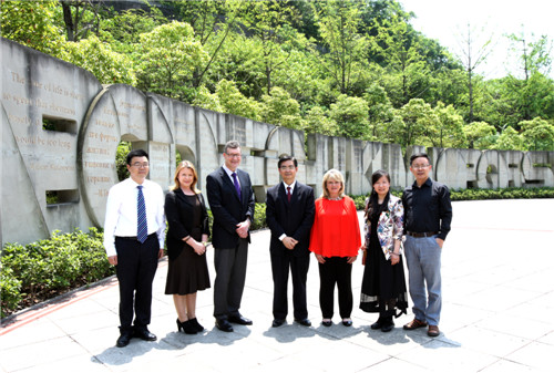 5月12日,索伦特大学校长graham baldwin教授、国际发展办公室主任jo nesbitt女士和创新创业中心顾问 nicky curtis女士来访我校。李克勇校长、董洪川副校长在西区行政楼501会议室与来宾会晤。