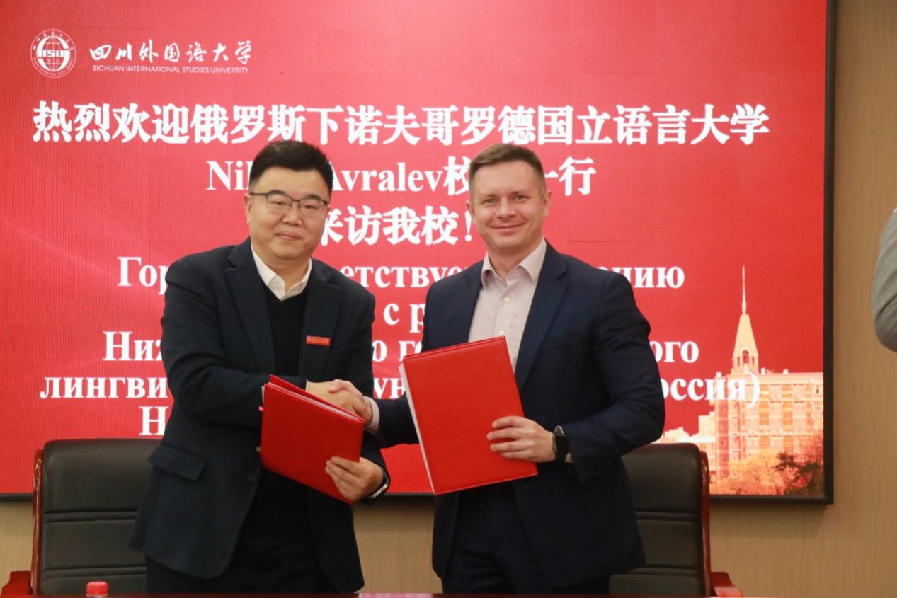 董洪川对尼·弗·阿夫拉廖夫校长一行到访表示热烈欢迎。他指出,中俄新时代全面战略协作伙伴关系为两国教育文化领域的深度合作奠定了坚实基础,也为两校友好交往注入了持续动力。他回顾了两校长期以来的合作历程,充分肯定了双方在校际交流与孔子学院建设中取得的显著成果,并表示将进一步推动双方合作取得更大成效。 尼·弗·阿夫拉廖夫表示,四川外国语大学是下诺夫哥罗德国立语言大学最重要的合作伙伴,两校合作已逾二十年,双方共建的孔子学院也即将进入第十五个年头。他高度评价了双方合作的成果,并对中俄教育年背景下两校的合作充满信心。