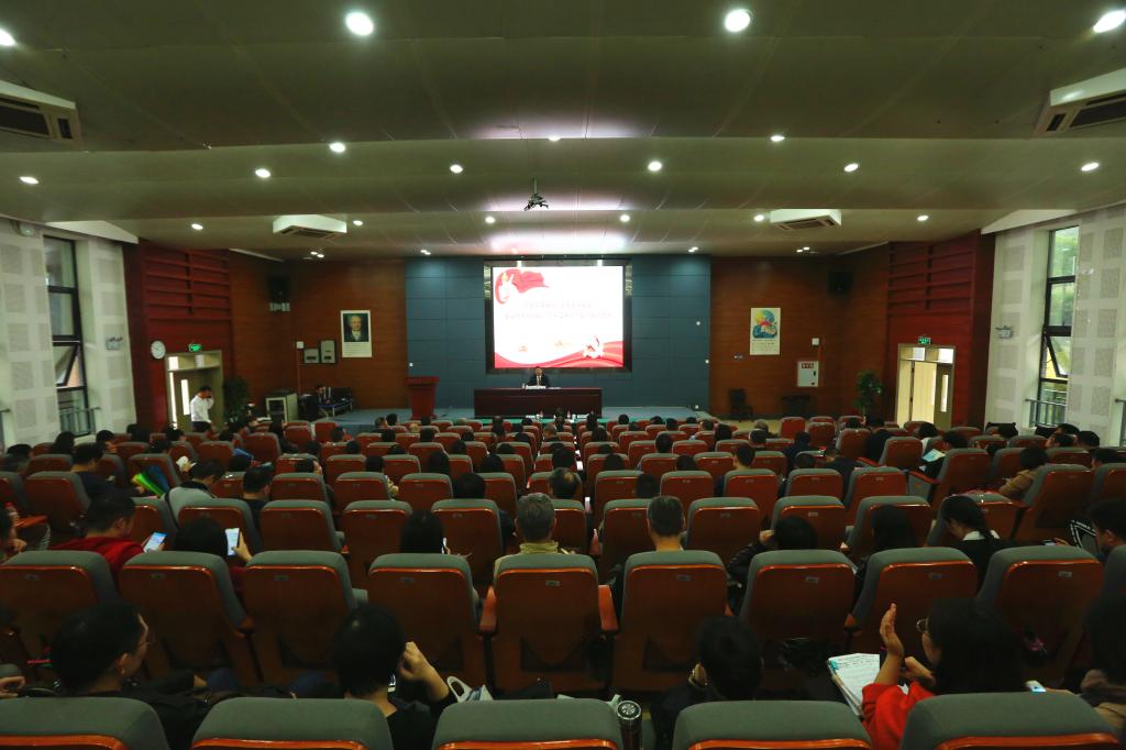 10月15日,党委书记邹渝在西区教学楼A报告厅作题为《夯实党建基础,筑牢战斗堡垒,建设特色鲜明的高水平应用研究型外国语大学》的主题教育专题党课报告。市委巡回指导十三组副组长、市畜科院党委书记、副院长唐德荣,市委巡回指导十三组成员、市纪委监委驻市农业农村委纪检监察组副组长谢增祥出席会议。学校领导班子,全体中共党员中干、组织员,全体基层党支部书记,党群直属党支部教工党员,英语学院、马克思主义学院、社会与法学院教工党员聆听了本次党课。