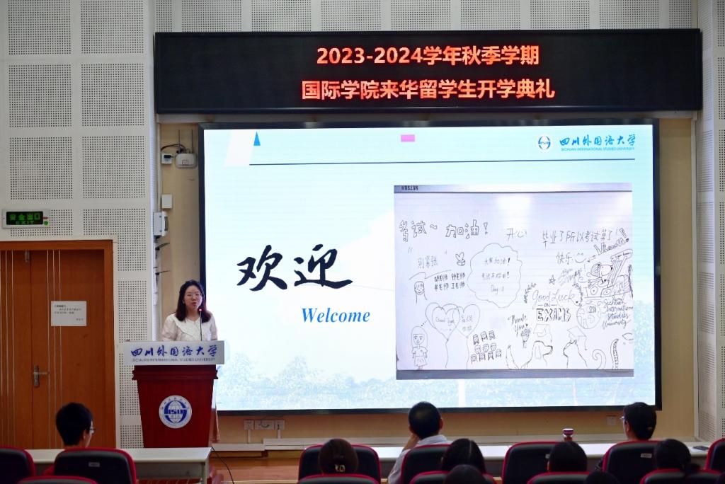 院长曾传芳在致辞中,向不远万里来到中国求学的留学生们表示热烈的欢迎和由衷的钦佩。曾院长提到,留学生们走出国门,来到异国他乡求学,是一件非常有勇气的事;敢于打破隔阂,倾听不同声音,更是体现了国际视野和开放包容的胸怀。希望留学生们学在川外,乐游重庆,知行中国,架起中外文明互鉴的桥梁,共同促进中外文化交流,为构建和谐世界作出贡献。
