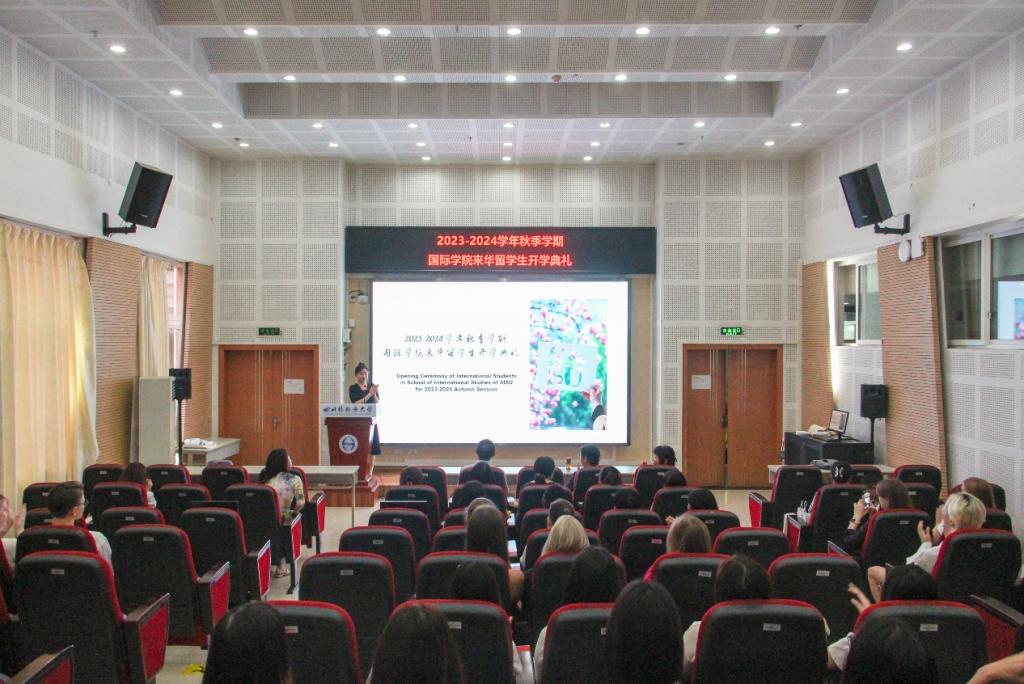 2023年9月11日,国际学院(出国培训部)2023年秋季学期来华留学生开学典礼在国际大厦报告厅举行。学院党总支书记张泽民、院长曾传芳、副院长张勇、国际中文教育全体在岗教师以及全院来华留学生出席本次典礼。