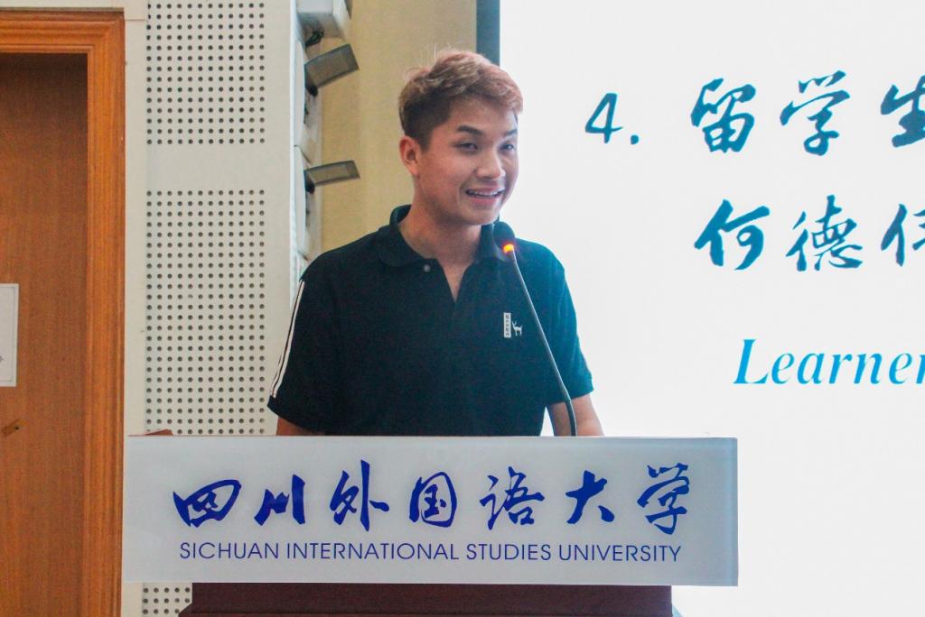 来自泰国的何德伟同学感谢学校提供宝贵的学习机会。他表示,留学川外让他收获颇丰,不仅提高了汉语水平,还了解了优秀的中华文化和独特的中国智慧。他鼓励新同学加倍努力,学更多的知识,交更广的朋友,看更美的风景,遇见更好的自己。