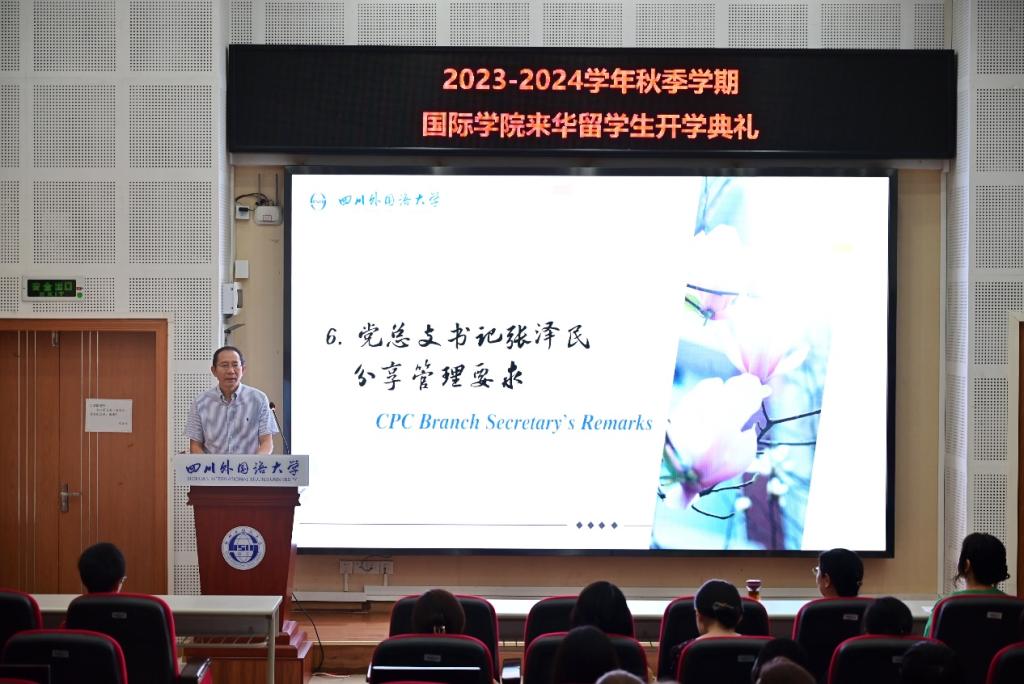 党总支书记张泽民分享了学生管理要求。他希望留学生们珍惜本次留学机会,遵守中国的法律法规和学校的校规校纪,成为积极向上、充满正能量的青年学生和世界公民;大家缘聚川外,祝愿大家乐享魅力歌乐的留学生活。