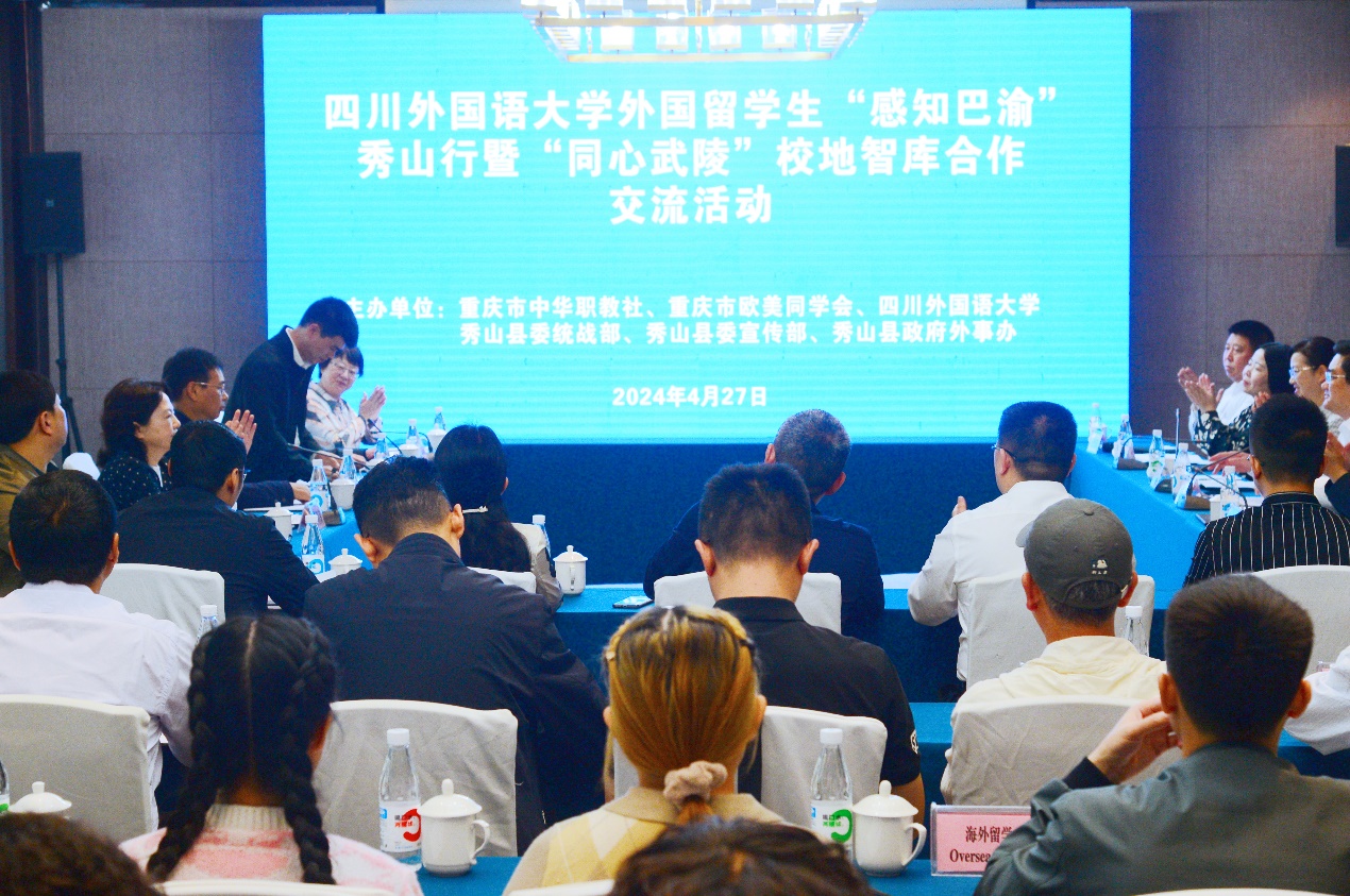 2024年4月26-28日,应秀山县委统战部邀请,学校党委副书记苟朝莉一行率队赴秀山开展外国留学生“感知巴渝”暨“同心武陵”校地智库合作交流活动。党委常委、统战部部长陈新,国际合作与交流处处长张幼斌,学校派往秀山的四位驻村第一书记黄光辉、范杰、连军、朱天祥,以及国际处负责来华留学管理的钟南征、柳真红老师陪同参与。市委统战部二级巡视员、市中华职教社常务副主任王林,市欧美同学会秘书处处长聂明建,秀山县委常委、统战部部长林成芳,县委常委、宣传部部长高利,副县长徐燕、马世平,市商务委帮扶集团驻县工作队队员唐勇一同参加了本次活动。