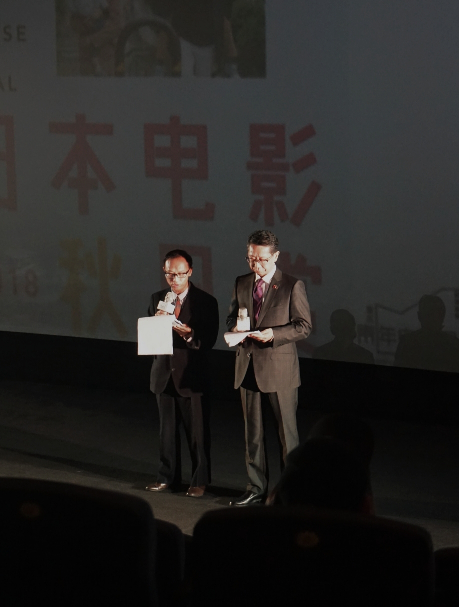 朱茂先生为“日本电影秋日赏”作开幕致辞,他首先对本届影展主题策展辛苦付出的工作人员们表达了感谢。“电影这门艺术已经诞生百年,它不仅可以娱乐人们,可以反映社会揭露现实,更是一种促进文化交流的媒介。”在讲话中,朱茂提出今年是中日和平友好条约签订的40周年,他希望电影能成为文化交流的窗口,越来越多人能通过电影艺术了解日本文化,借此机会拉近两国距离。最后,朱茂表示欢迎更多日方导演来中国重庆取景拍摄完成更多优质的作品。