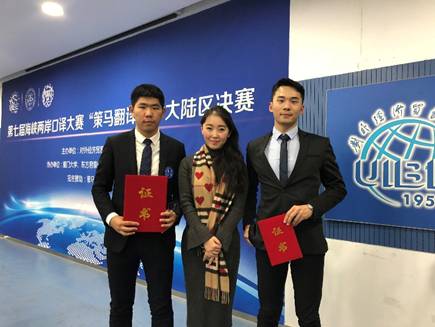 第七届海峡两岸口译大赛大陆区决赛于12月10日在北京对外经济贸易大学成功举行。我校翻译学院2017级翻译专业硕士研究生高翔与2014级翻译专业本科生何承恩同学分别以西南赛区冠亚军身份晋级大陆区决赛,与来自祖国大陆其他赛区的24名选手同场竞技。经过激烈的角逐,最终,高翔荣获二等奖,何承恩荣获优秀奖。翻译学院教师秦勤带队参赛,荣获优秀指导教师奖。
