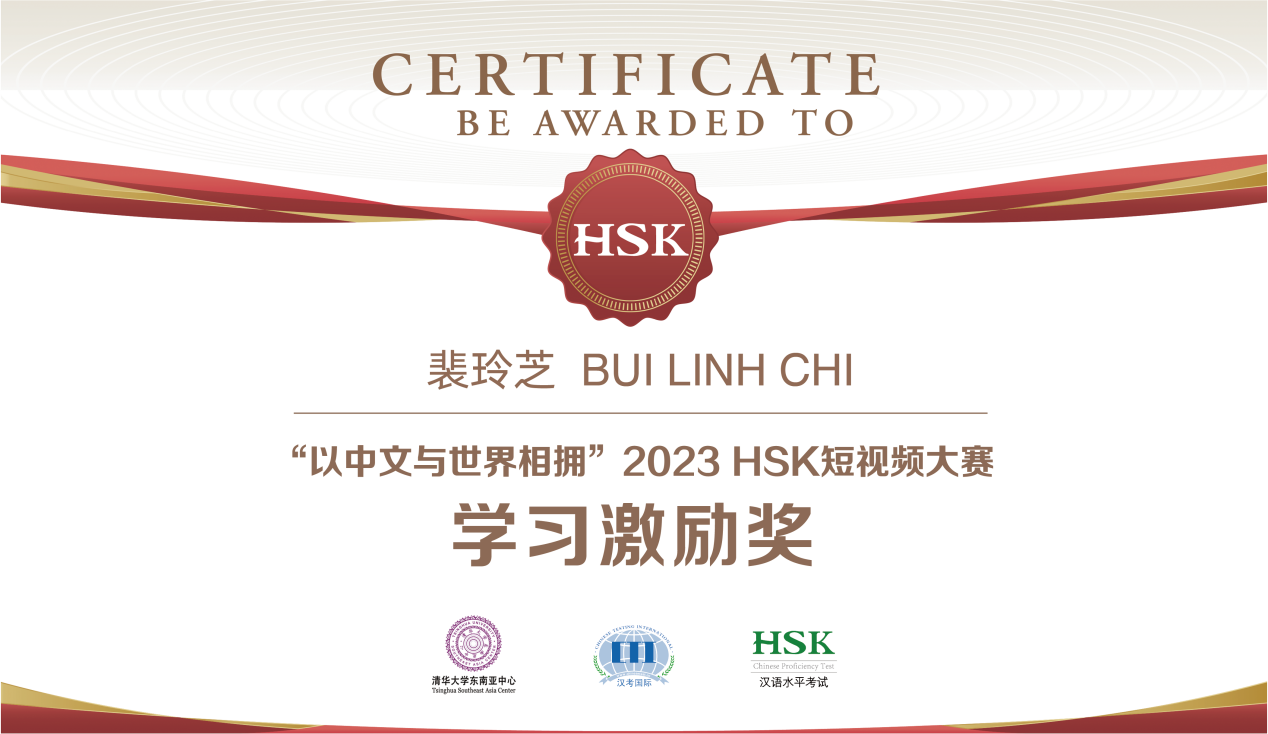 比赛开启后,我校积极动员国际学生参赛。从6月30日至7月30日,历经整整一个月的激烈角逐和专家评审组数位评委老师的严谨评选,我校学生BUI LINH CHI(裴玲芝)的参赛作品《我在中国学到的才艺:古筝》获得了学习激励奖,学校同时荣获优秀组织奖