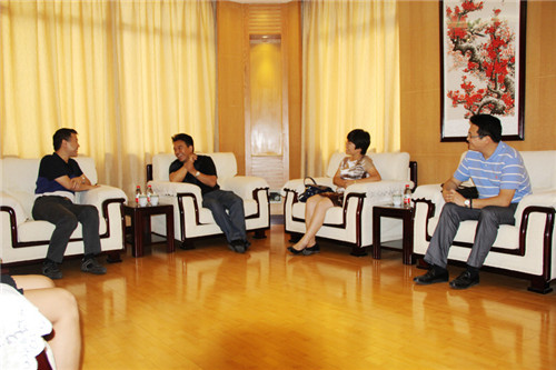 明国辉书记接见张继军副书记(左一)、王毅部长(右二)、李鹏副部长(右一)