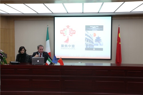 中国国际广播电台西欧拉美广播中心意大利语部白旸副主编通过多媒体展示介绍《中意》杂志;马非同领事介绍他主编的《聚焦中意》杂志以及即将推出的《中意西南》杂志,并分享在意大利国家电视台播出过的第一部关于重庆的纪录片片段。这些杂志主要从中意双方经济、政治、文化、美食等方面进行介绍,从而推进了中意文化交流与合作,促进双方经济发展。与会嘉宾还包括来我校不久的意大利外交与国际合作部特派外教milena ciroli教授,ciroli教授将从本月起在我校意大利语专业为三个年级上课,并重点针对中国学生相对薄弱的写作与口语课程,还将协助我校与意大利驻重庆总领事馆开展课外活动。