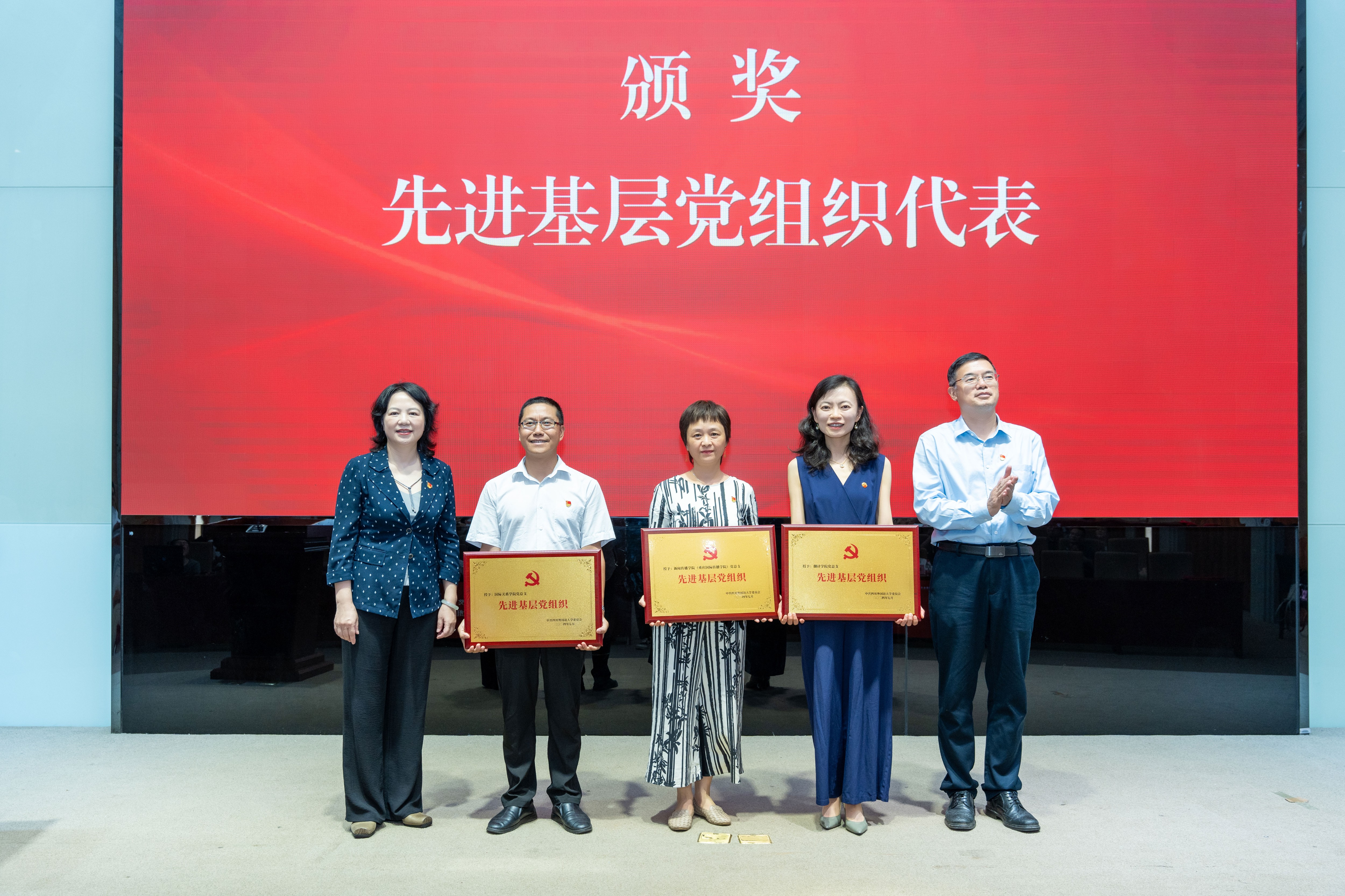 2024年7月1日下午,四川外国语大学庆祝建党103周年“七一”表彰大会暨“光荣在党50年”纪念章颁发仪式在宏文楼国际报告厅举行。学校党委通过表彰先进,凝聚力量、鼓舞干劲,为全面深入学习贯彻习近平新时代中国特色社会主义思想和党的二十大精神,加快建设特色鲜明高水平应用研究型外国语大学,推进学校各项事业科学发展提供坚实保障。全体在家校领导,“光荣在党50年”纪念章获得者,受表彰的优秀共产党员、优秀党务工作者、先进基层党组织代表,党员中干、专职组织员、党支部书记等参加会议。会议由党委副书记苟朝莉主持。