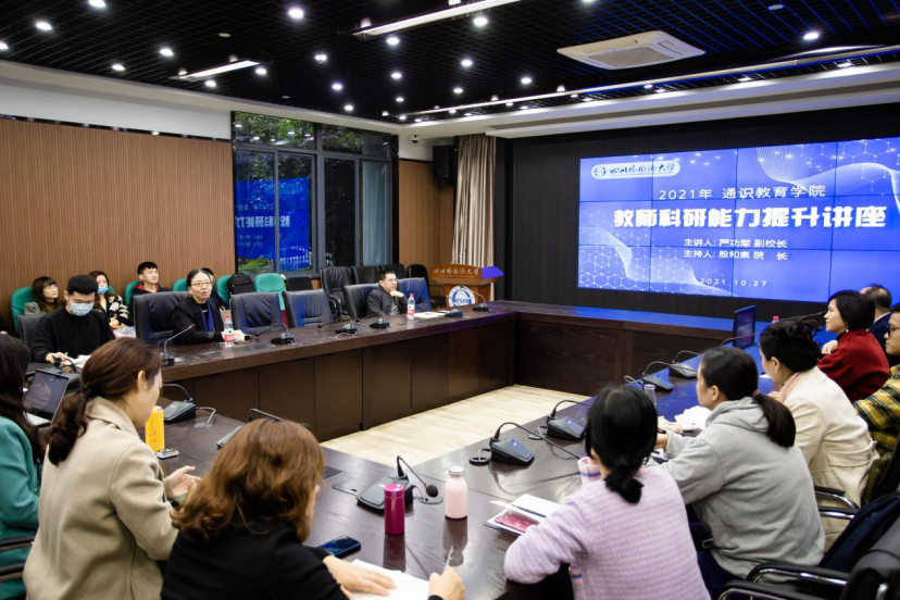 为提升通识教育学院整体科研水平,2021年10月27日上午10:00,严功军副校长在C-117会议室为我院全体教师做了题为“教师科研能力提升思考”的主题讲座。讲座由殷和素院长主持。