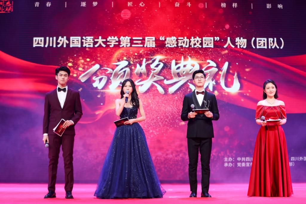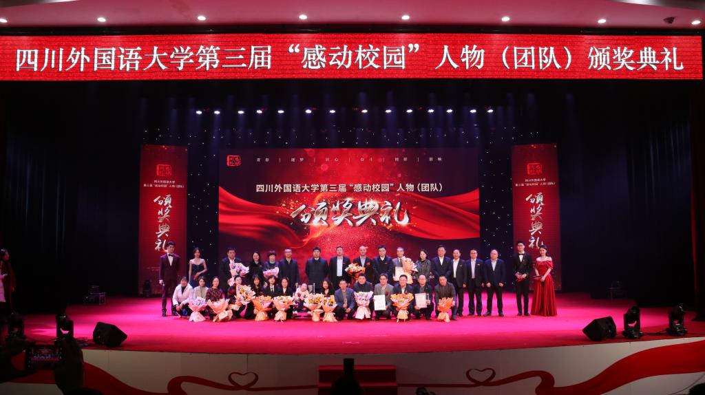 “今夜,我们赞颂优秀,也歌唱平凡;今夜,我们致敬崇高,也铭记感动。”……12月15日晚,四川外国语大学第三届“感动校园”人物(团队)颁奖典礼在东区大礼堂温情上演。我校校领导邹渝、董洪川、苟朝莉、卢波、李彦、郑白玲、苟欣文、祝朝伟、严功军,沙坪坝区文化和旅游委员会书记单大国,部分媒体代表,学校各职能部门、二级学院负责人、离退休老同志代表及师生代表参加了本次颁奖典礼。