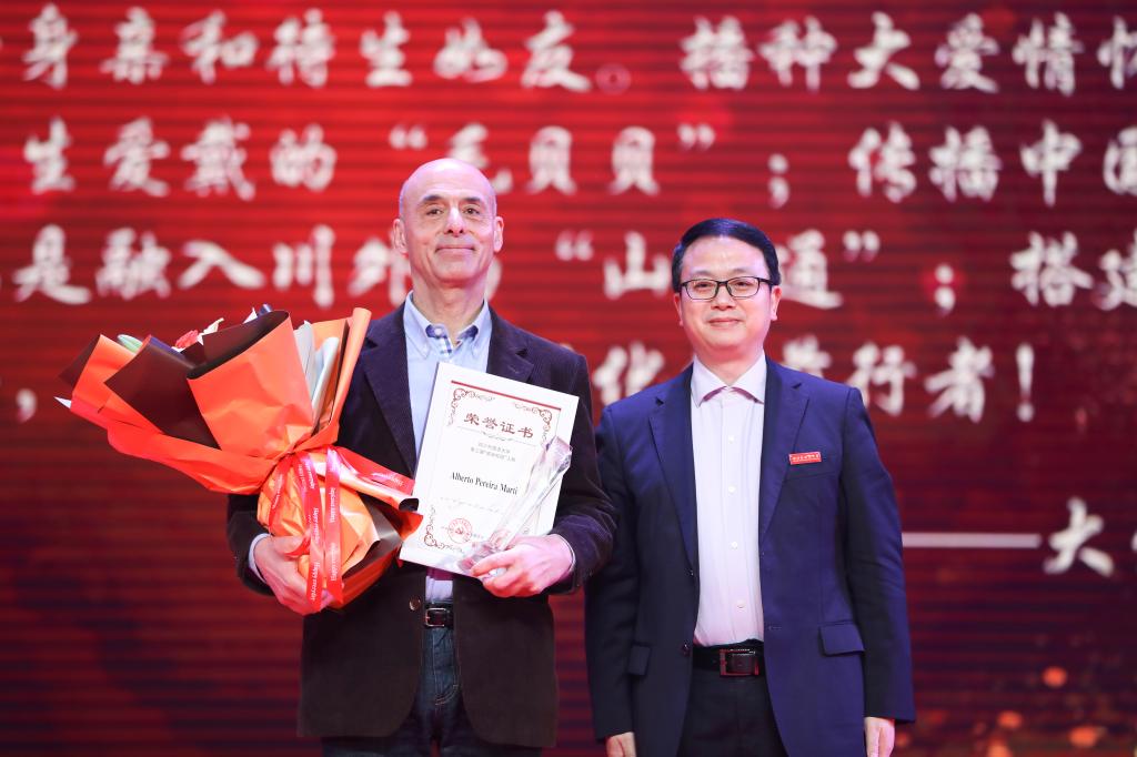 外教阿尔贝托用葡萄牙语娓娓道来,“‘毛贝贝’是学生给我取的昵称。我尊敬伟人毛泽东,也热爱中国文化。‘贝贝’是学生送给我的爱称。他们总是排在我的第一位。我喜欢在川外教书,我爱川外,川外是我的第二个家!”阿尔贝托老师对学生、对川外的爱深深地感染了在场的每一个人。
