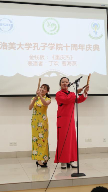 团委书记丁欢和曹海燕为十周年庆典献上精彩表演。