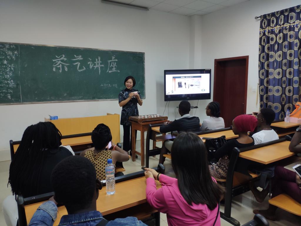 会后,代表团实地访问孔子学院,与孔子学院的师生交流。郑白玲为孔子学院师生开展茶艺讲座。