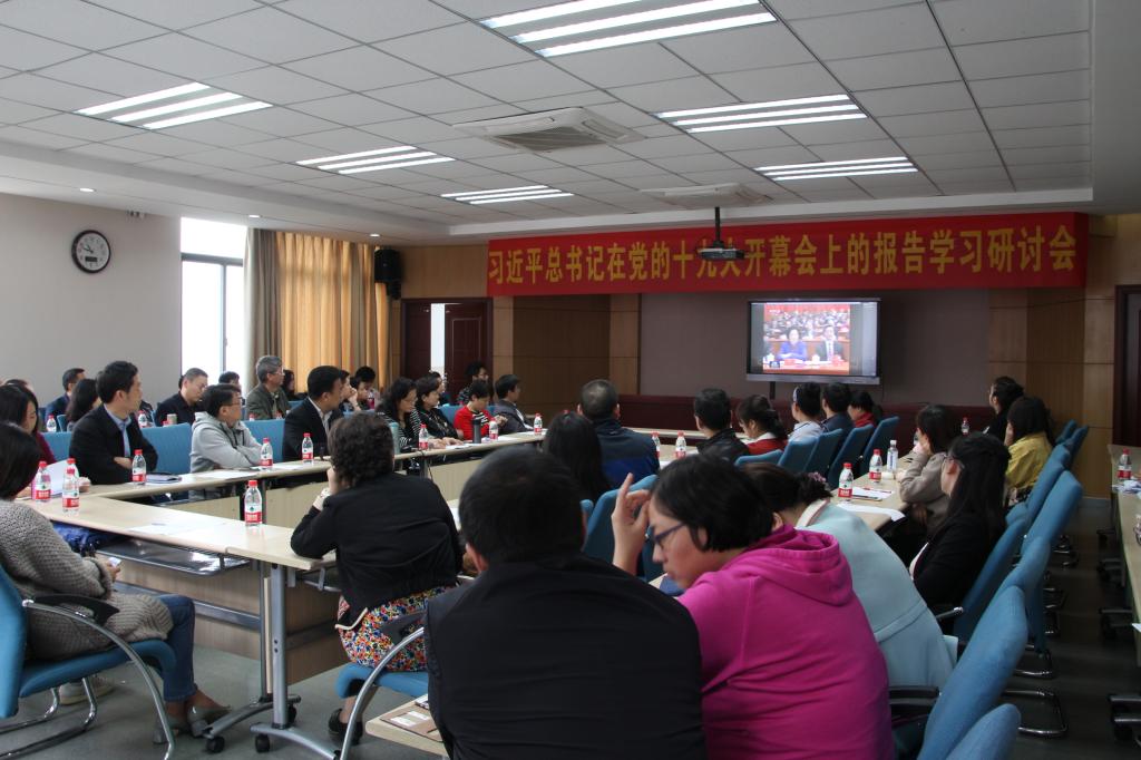 在观看了习近平总书记十九大报告相关视频后,沈彤就习近平总书记报告内容中的十三个部分进行了梳理,并重点介绍了与学校发展、教职员工相关的内容。英语学院的教师们就十九大报告的内容纷纷谈了自己的感受和认识。
