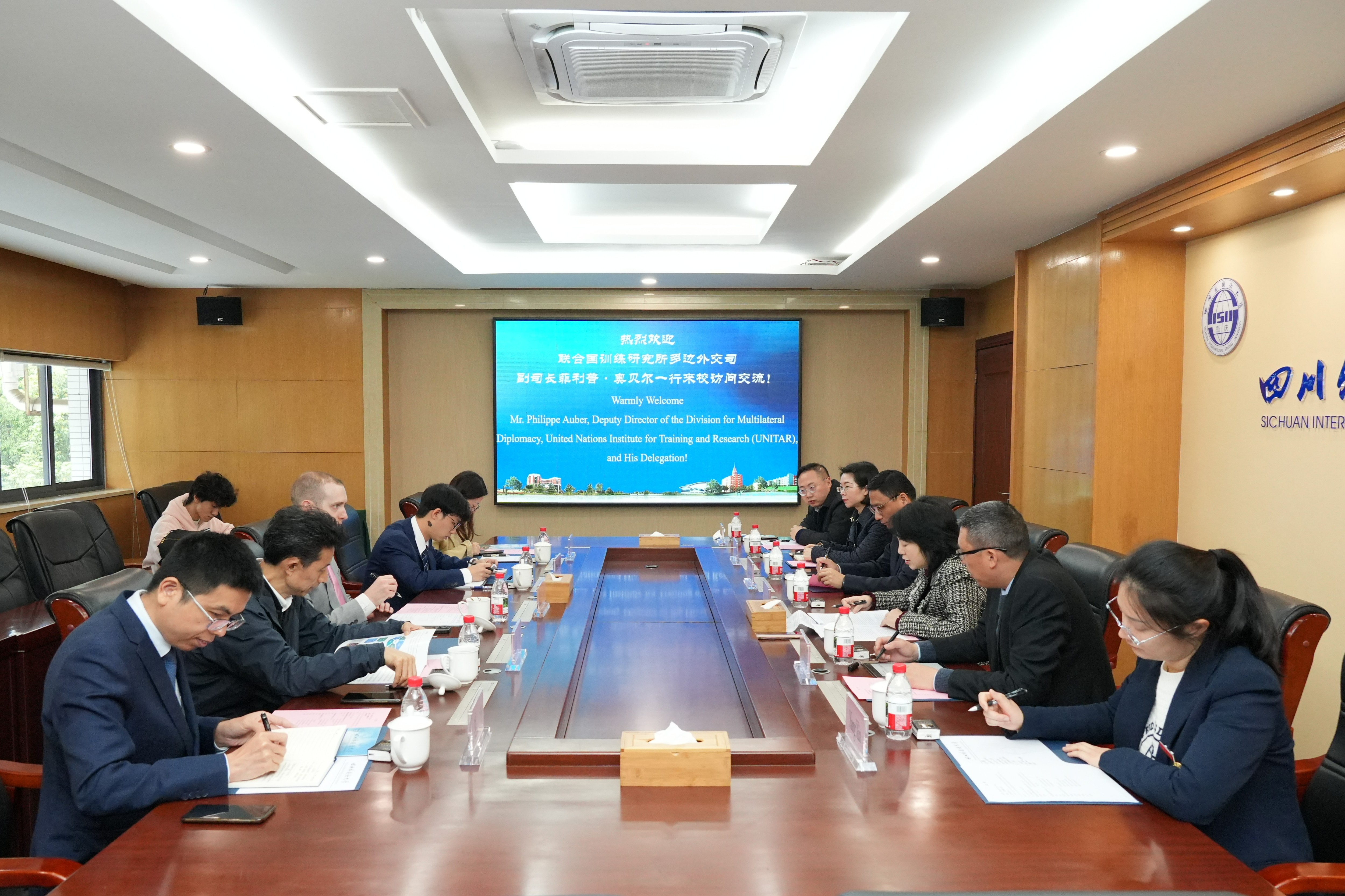 3月24日上午,联合国训练研究所多边外交司副司长菲利普·奥贝尔一行访问我校。校长董洪川会见来宾,重庆市人民政府外事办公室副主任周毅、学校党委副书记苟朝莉出席会谈。