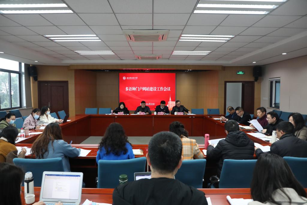 11月11日,学校召开多语种门户网站建设工作会议,党委书记邹渝、校长董洪川、副书记苟朝莉、副校长祝朝伟,外语语种教学单位负责人、非通用语种专业负责人和相关职能部门负责人参加会议。会议由董洪川主持。