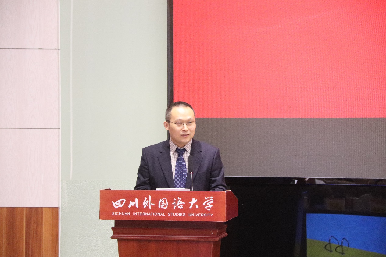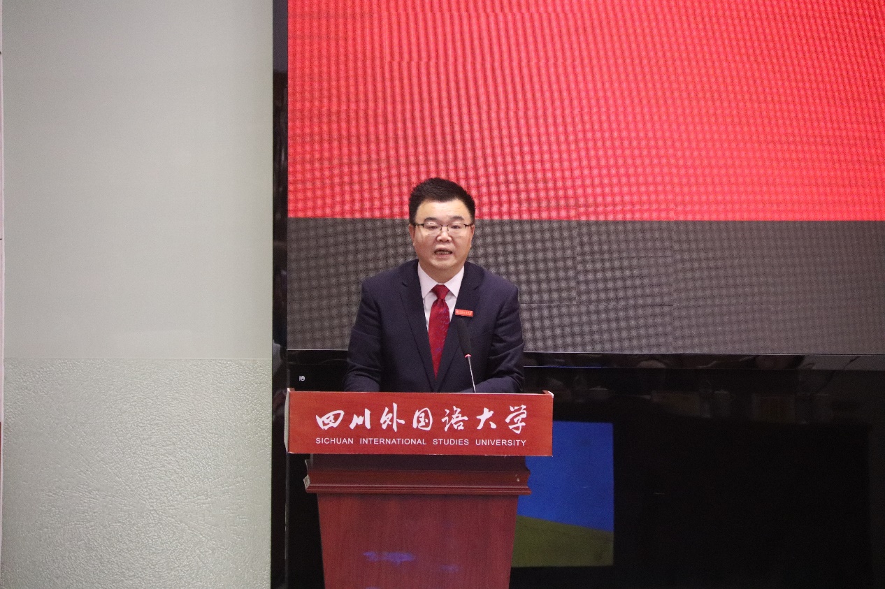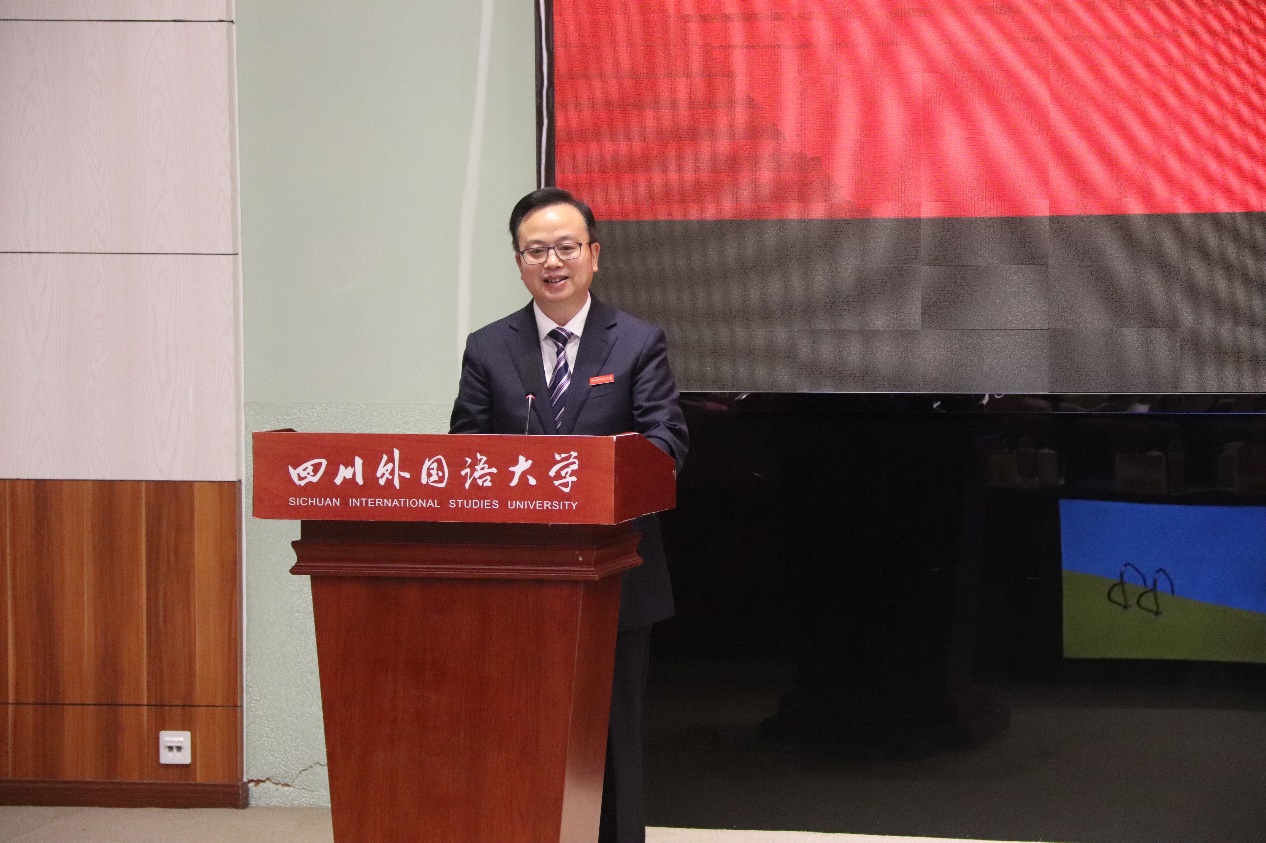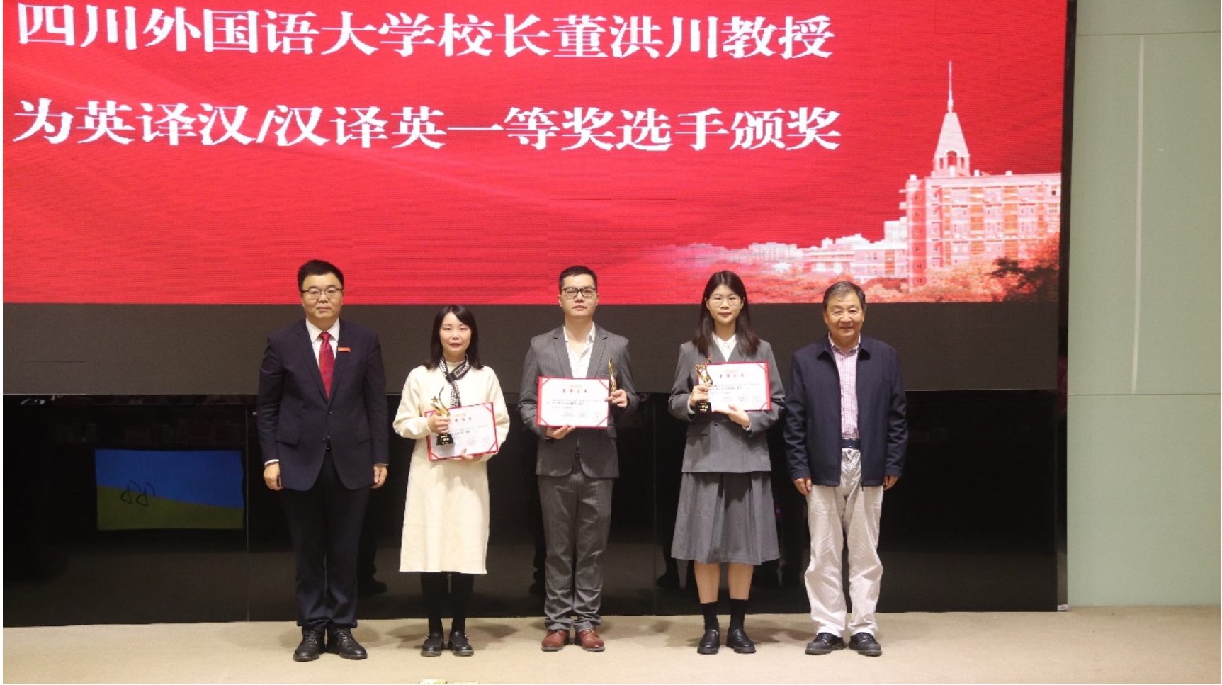 2023年10月19日上午,第十四届“四川外国语大学——《英语世界》杯”翻译大赛颁奖典礼在四川外国语大学国际报告厅顺利举行。四川外国语大学校长董洪川教授、副校长祝朝伟教授、中国英汉语比较研究会会长罗选民教授、《英语世界》主编邢三洲先生出席并致辞,大赛评委翻译学院傅晓微教授、王明树教授、唐昉副教授、侯弈茜副教授、张文鹤副教授及部分大赛获奖选手代表、学院本科生及研究生代表参加典礼。典礼由四川外国语大学翻译学院院长李金树教授主持。