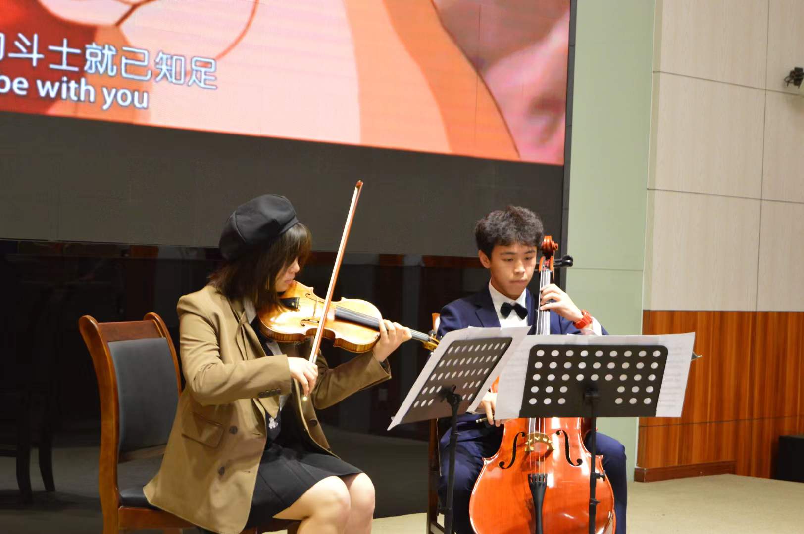 典礼的文艺展演环节,四川外国语大学翻译学院周语荟、陈舜燚进行了小提琴、大提琴合奏,翻译学院马烈秦演唱了歌曲《Who Says》。