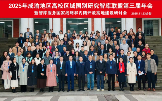 11月23日,2025年成渝地区高校区域国别研究智库联盟第三届年会暨智库服务国家战略和内陆开放高地建设研讨会在我校举行。本次会议由成渝地区高校区域国别研究智库联盟秘书处主办,我校区域国别研究院、科研处联合承办,吸引了成渝地区近50所高校、60余家区域国别研究机构的近150名专家学者齐聚一堂共襄学术盛举。我校副校长王仁强出席大会并致辞。