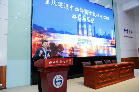 重庆市委外办秘书处处长冯仁勇以《重庆建设中西部国际交往中心的路径与展望》为题作主旨报告,紧扣区域国别研究服务内陆开放综合枢纽的核心主题,提出四大实践创新维度。他强调,必须以习近平外交思想为根本遵循,依托元首外交引领全球治理体系完善,深刻阐释内政与外交、发展与安全、官方与民间、全局与局部的辩证逻辑。他结合成渝地区双城经济圈战略定位提出“五度”实践路径——提升国际事务参与度、强化要素集聚度、激活交往活跃度、优化开放环境舒适度、打响城市品牌知名度,以高质量研究服务赋能区域高水平开放与高质量发展,助力内陆改革开放高地建设。