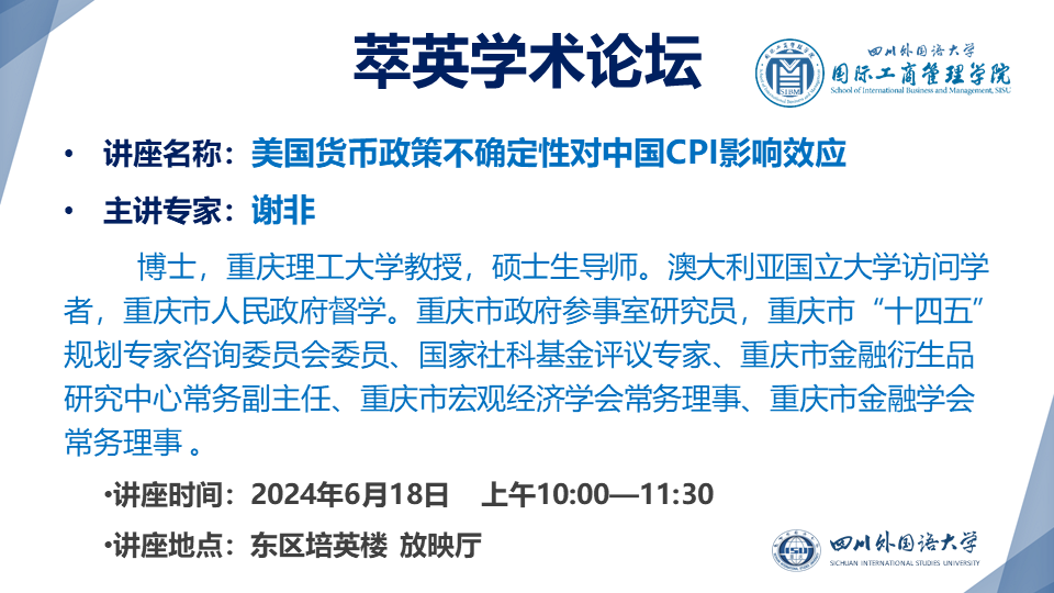主题萃英学术论坛:美国货币政策不确定性对中国CPI影响效应